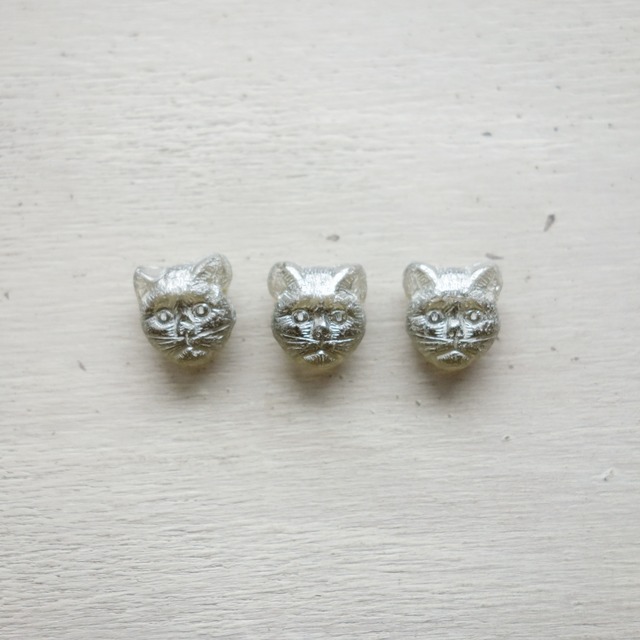 • チェコビーズ ネコの顔 ビーズ グレー 12×11mm (2個)